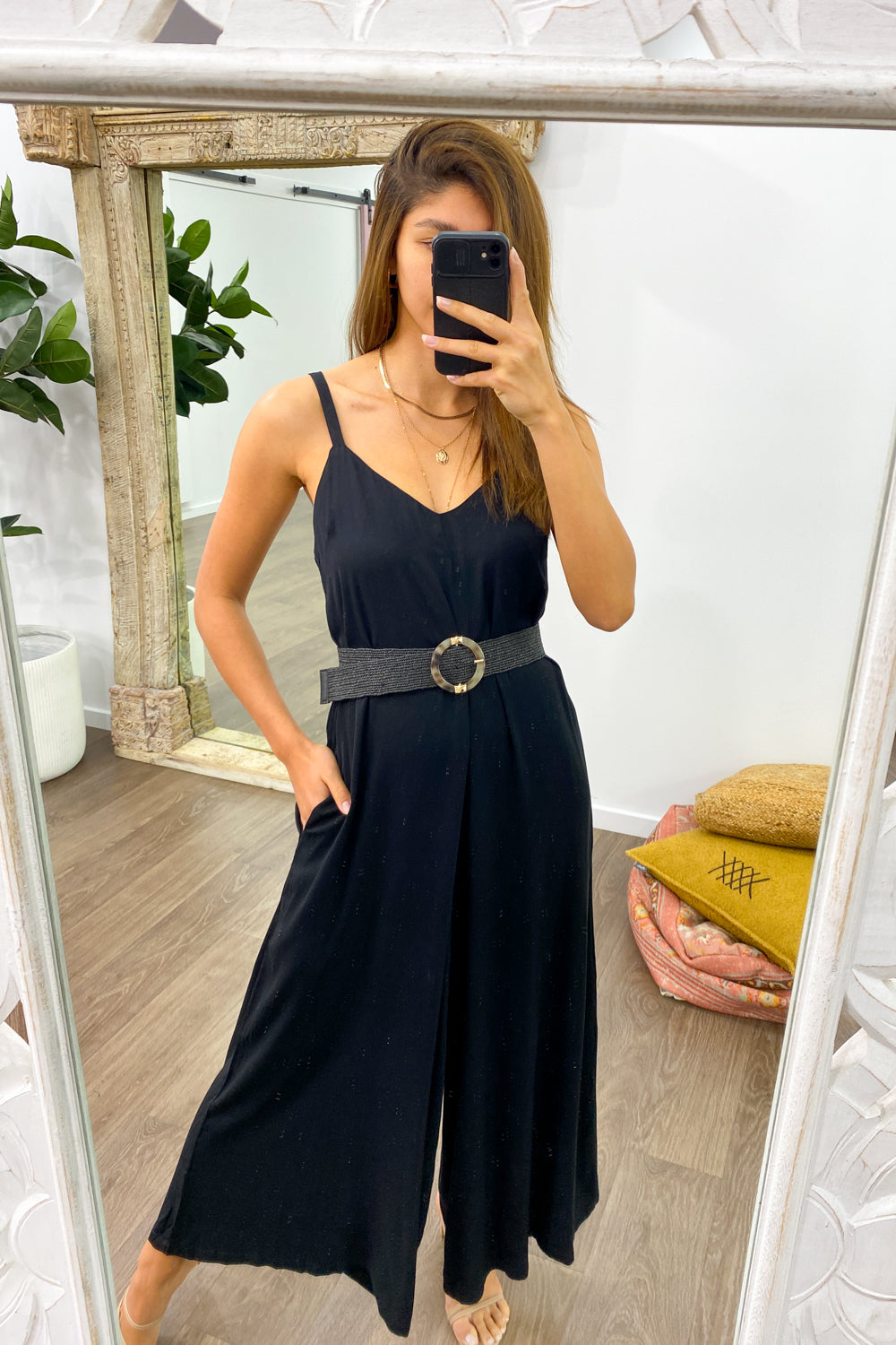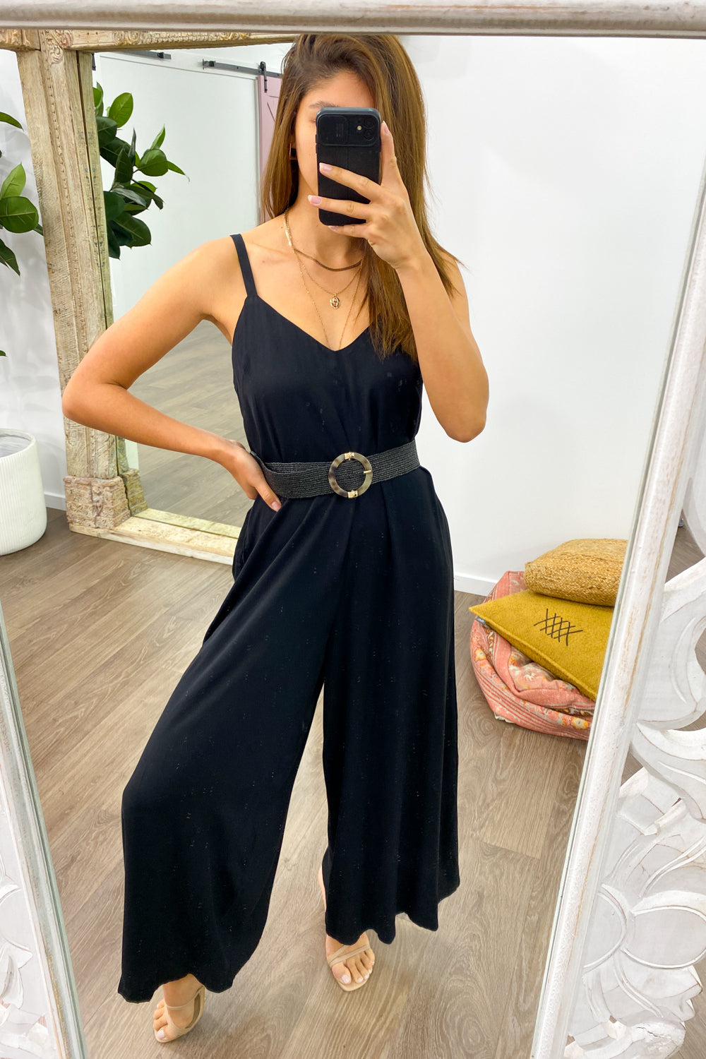 The wide legs create a relaxed, elegant silhouette, and the flattering V-neckline adds a touch of sophistication. Designed with wide straps to comfortably cover your bra straps, this jumpsuit combines style and practicality effortlessly.